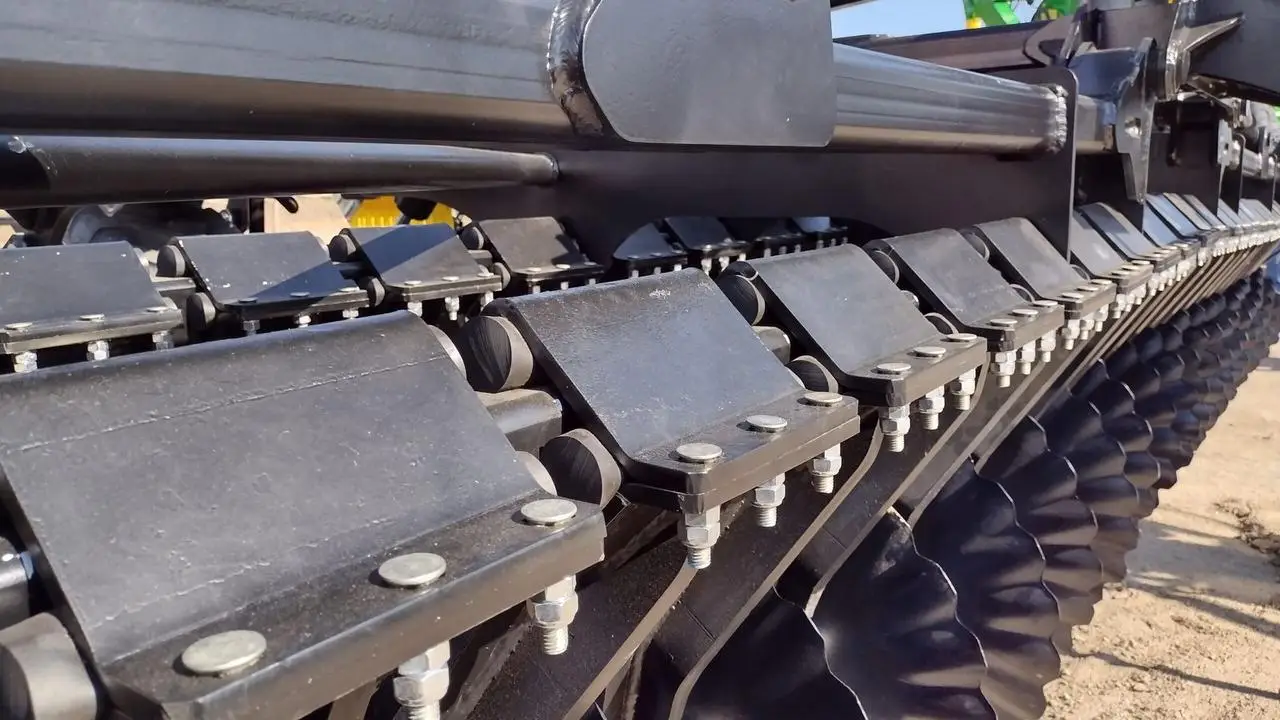 Дисковые бороны с эластичными резиновыми демпферами обеспечивают жесткость конструкции и стабильность хода агрегата даже в тяжелых полевых условиях. Необслуживаемые подшипниковые узлы уменьшают время обслуживания и имеют увеличенный ресурс по сравнению с “классическими” подшипниками.
