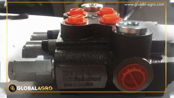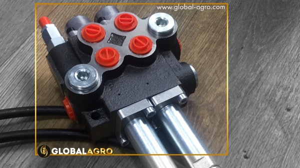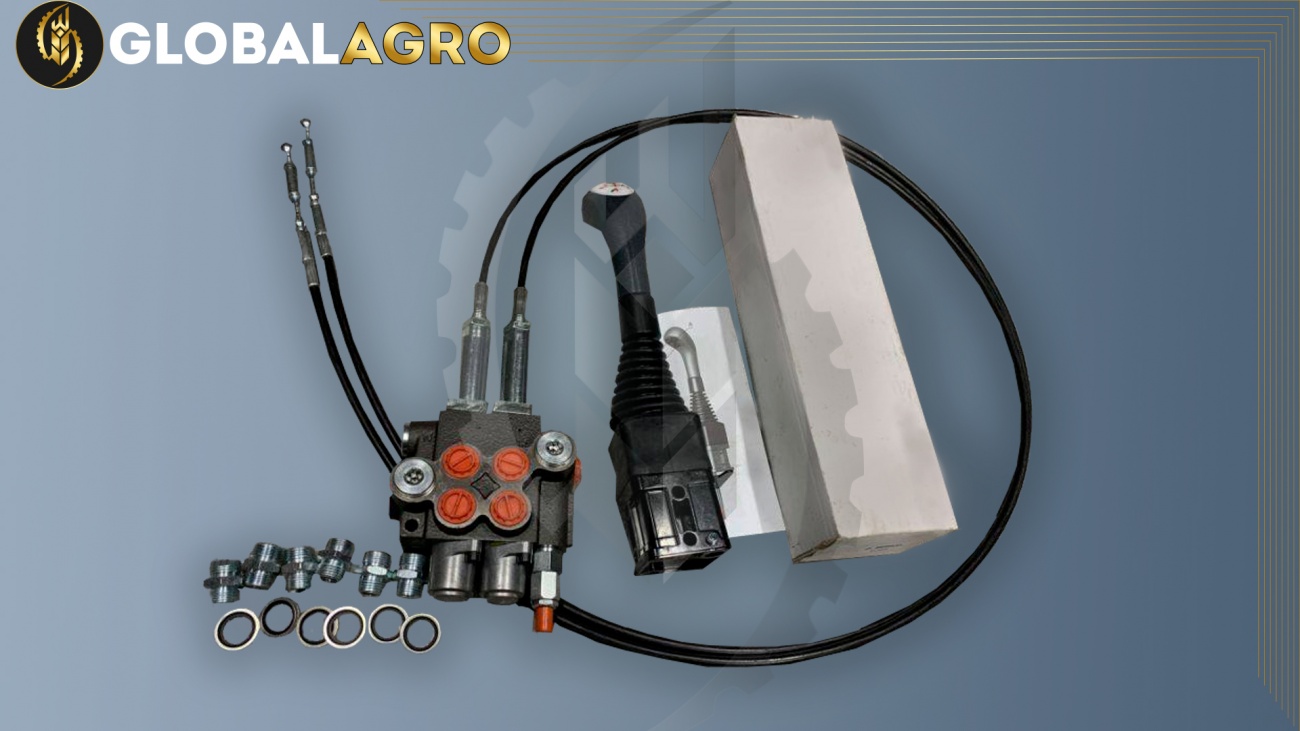 Джойстик дає можливість керувати навантажувачем більш плавними рухами та дозволяє зняти навантаження на гідророзподільник трактора. Двозолотниковий розподільник має два контури, пропускну здатність 40 л/м. На клапані регулюється подача, яка надходить на розподільник, затискаючи гайку, тим самим відкриваємо сильніше золотник і чим сельніше ми його викрутимо тим буде подача. Із заводу йде налаштований уже під роботу. Контур, що відповідає за підйом, він встановлений вздовж.