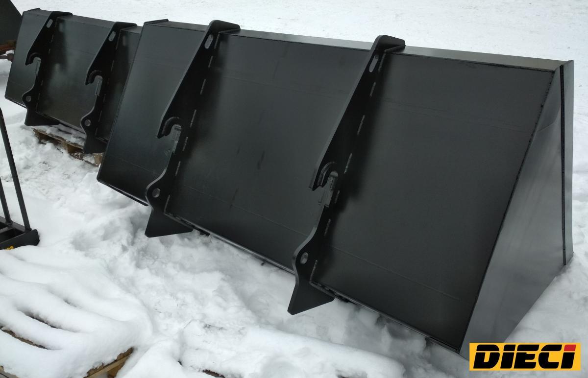 Ми можемо запропонувати Вам 10 видів ковшів, які відрізняються розмірами (шириною, місткістю) і призначенням. Однією з головних характеристик є ширина ковша. Наші ковші мають ширину від 1,8 м до 2,4 м (стандарт – 1,8 м, 2,2 м, 2,4 м). Також при виборі ковша дуже важливо оцінити його місткість. Мі маємо ковші місткістю від 0,6 м3 до 2,7 м3. Також ковші мають відміну за базовим навантажувачем – ми маємо варіанти MANITOU,, JCB, Bobсat, NewHolland, Claas, Merlo, Dieci, Faresin.