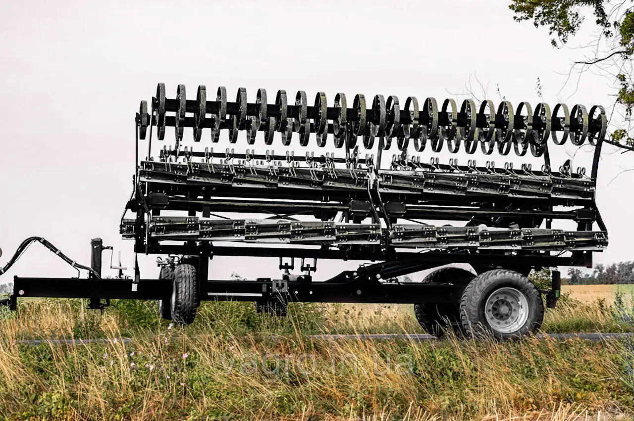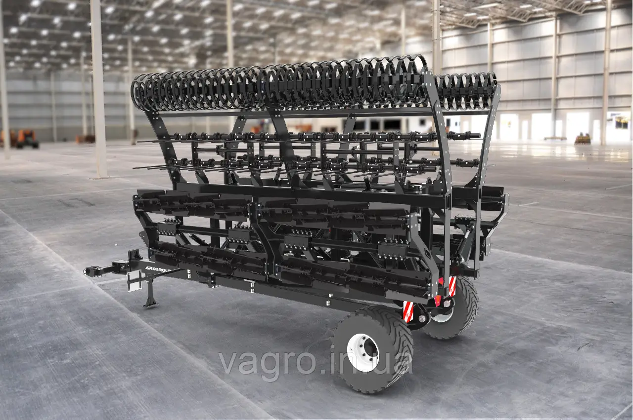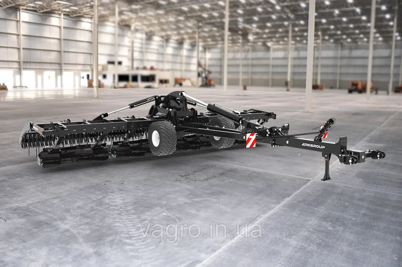 - Важка штригельна борона з гідравлічним регулюванням для ретельного подрібнення грудок і рівномірного розподілення органічного матеріалу