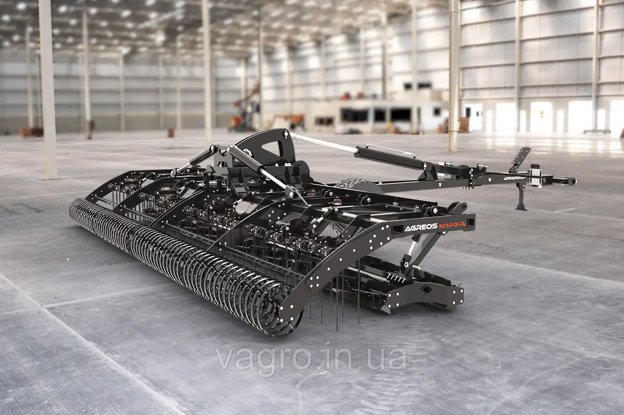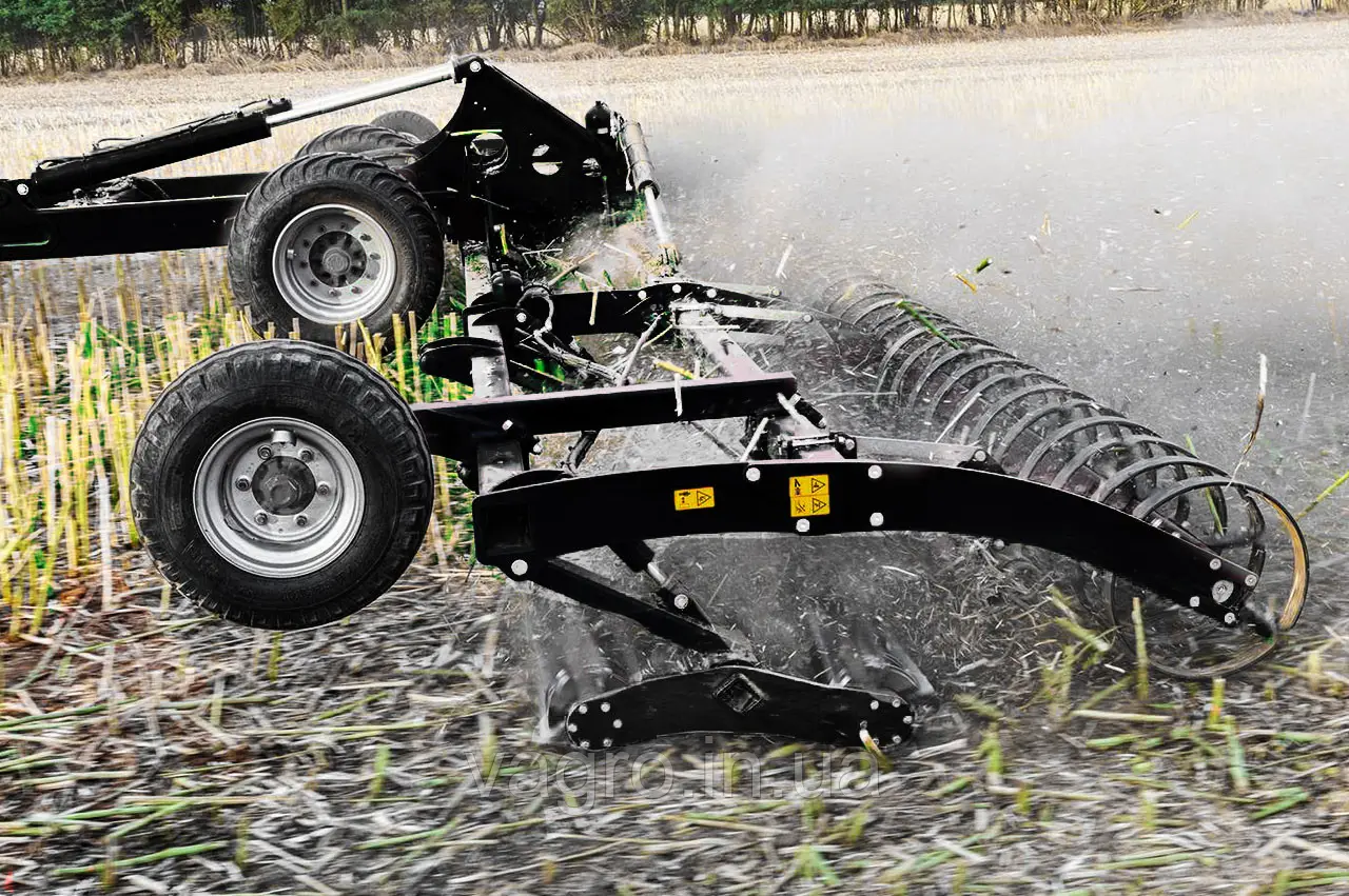 - Важка штригельна борона з гідравлічним регулюванням для ретельного подрібнення грудок і рівномірного розподілення органічного матеріалу