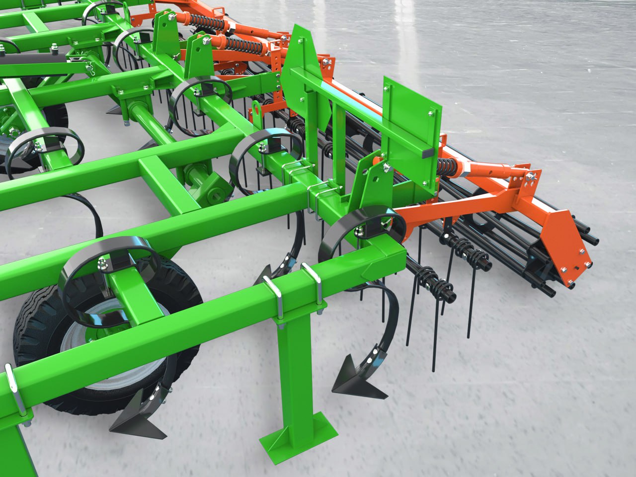 Культиваторы предназначены для комплексной обработки почвы, подрезки, вычесывания и уплотнения поверхностного слоя поля перед посевом. Он работает с тракторами, имеющими мощность от 60 л.