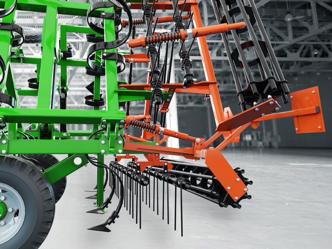 Двухрядная гребенка обеспечивает равномерное распределение и вычесывание пожнивных остатков и грунтовых образований. Трубчатый каток окончательно формирует правильную фракцию грунта и уплотняет поверхность.