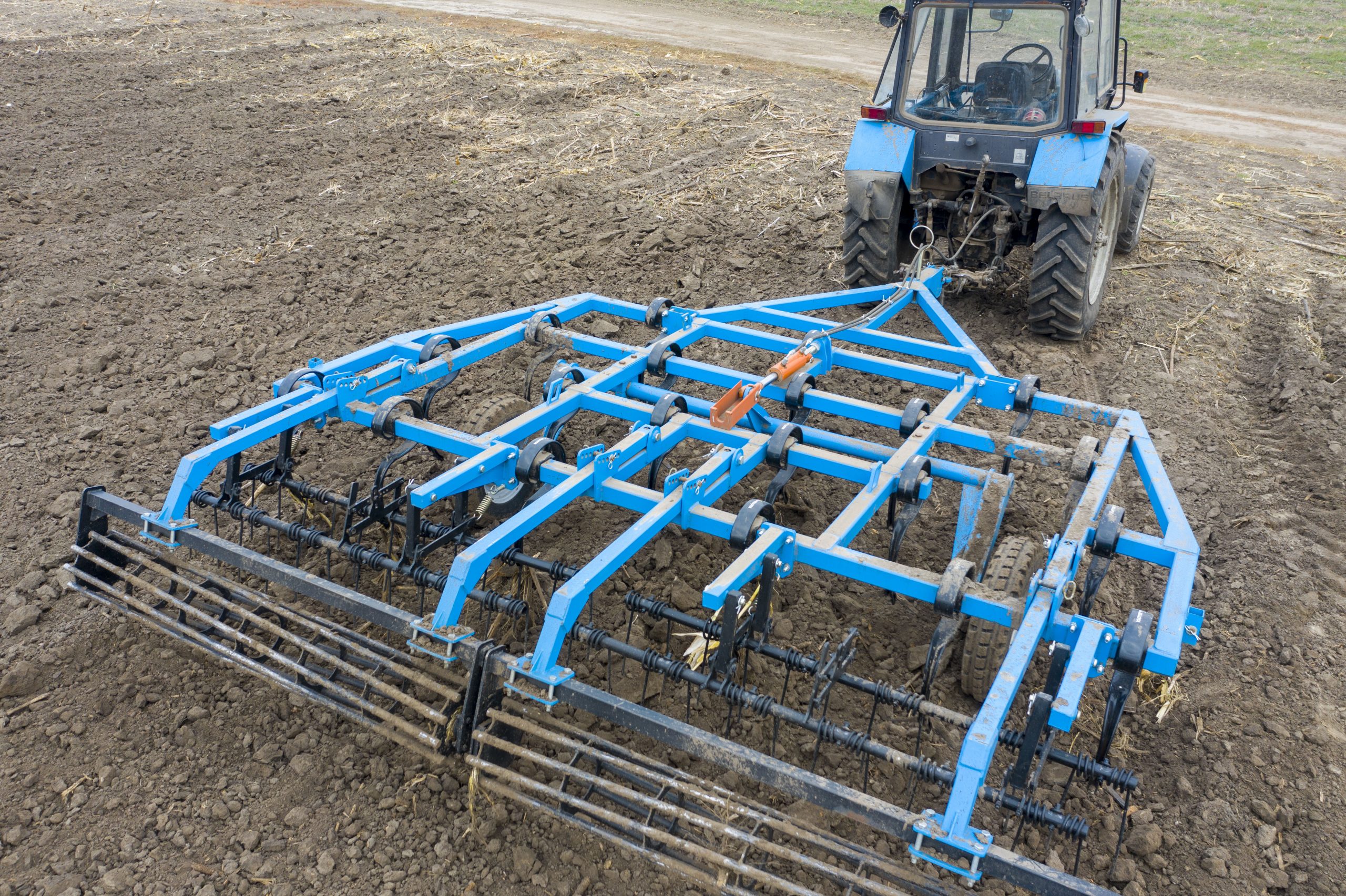 Задня прикочуюча навіска складається з двох барабанів довжиною від 1,5 до 2 м, діаметром Ø300 мм. Планковий барабан виготовлений з полоси 6х40 мм, а трубчатий з труби ДУ-20, що забезпечує оптимальне подрібнення та ущільнення грунту і дозволяє відразу проводити посів за традиційними технологіями зернобобових і просапних культур. |