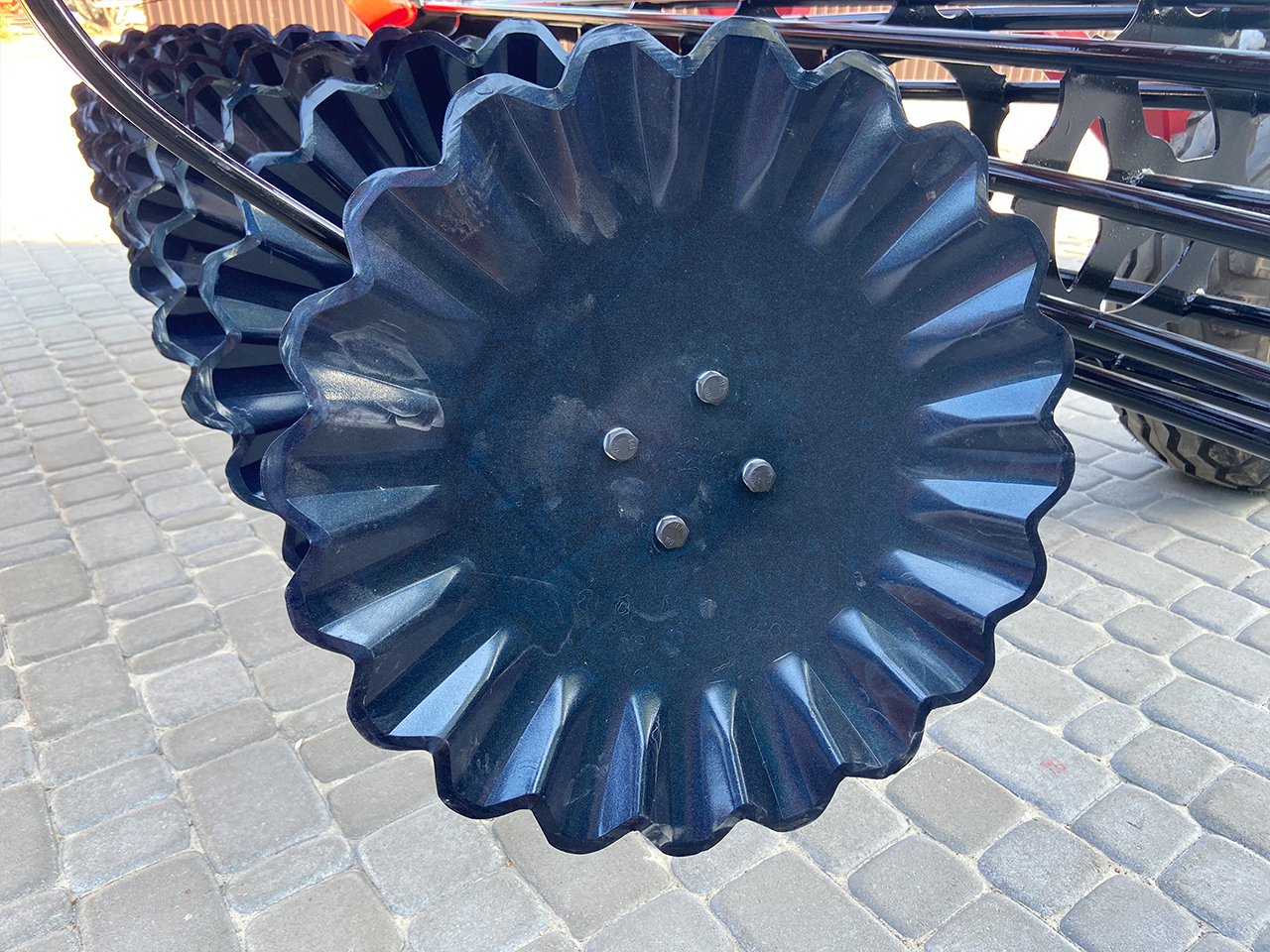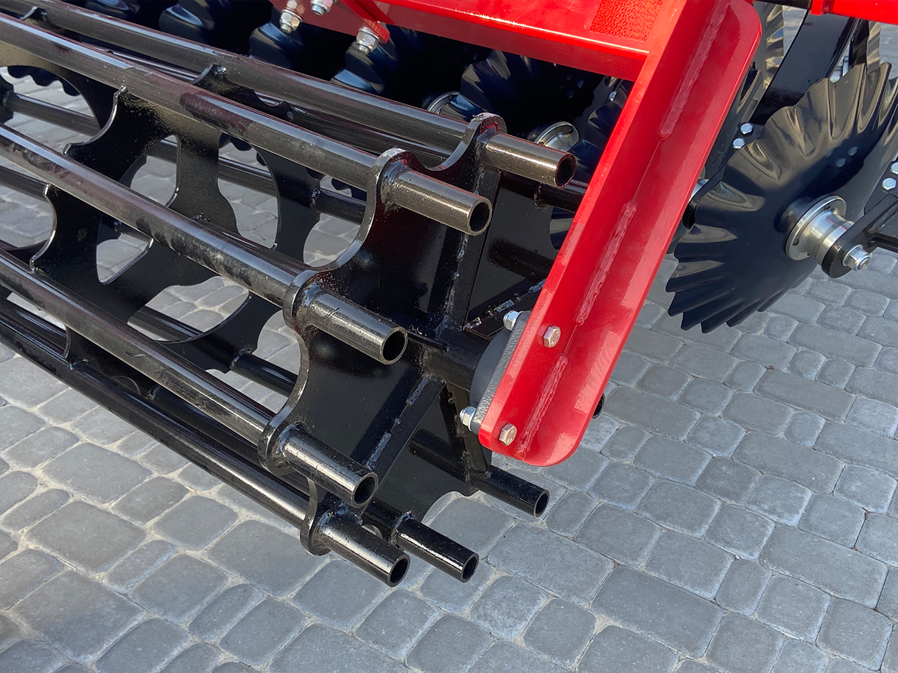За счет транспортного устройства есть возможность установить навесную сеялку сзади бороны, для одновременного посева зерновых культур и минеральных удобрений.