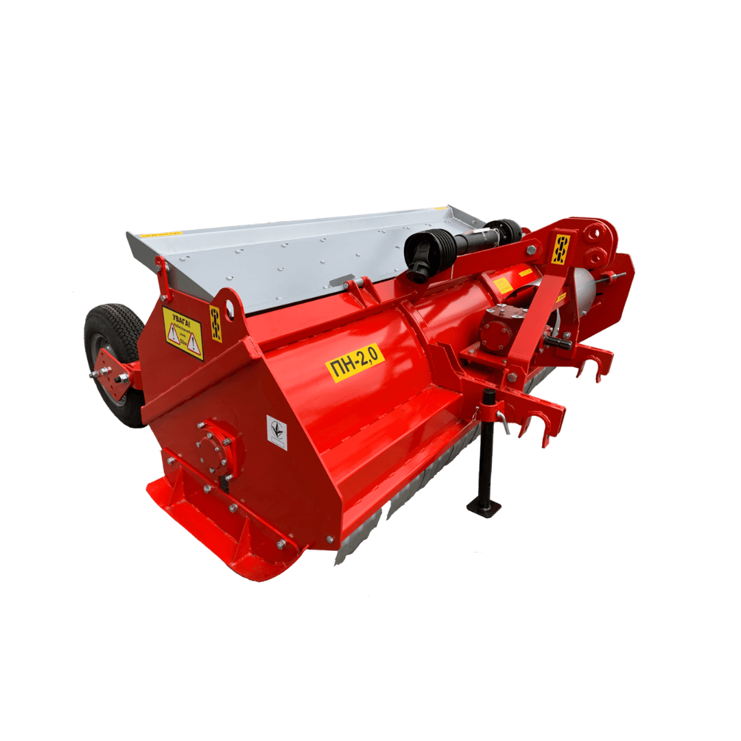 Мульчувач ПН-2,0 використовується для подрібнення валків соломи, післяжнивних залишків соняшника, кукурудзи та інших культур із рівномірним розподілом їх по поверхні поля.