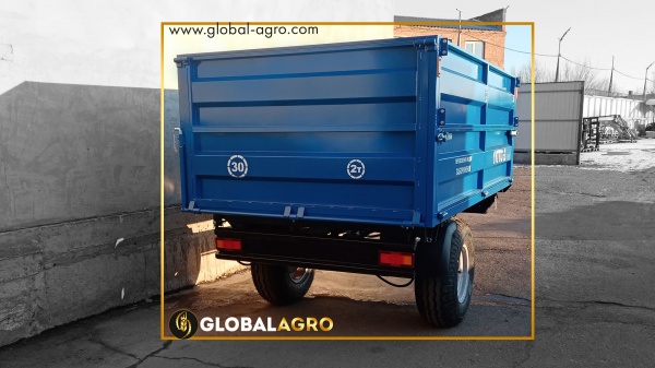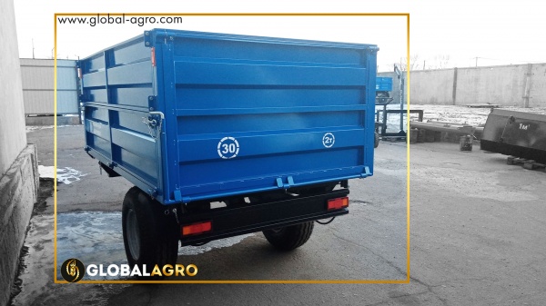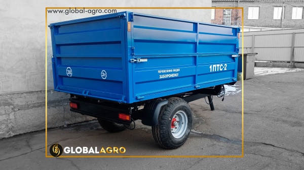 З легкістю транспортує різні с/г вантажі у вигляді: силозу, зерна, тирси, буряків та будівельного матеріалу, штучних вантажів. Так само не вибагливий до доріг. Вивантаження вантажу відбувається з трьох сторін (бічні і з задньої сторони) за допомогою гідроциліндра. Стінки тракторного причепа відкидаються на кут в 50 градусів і це дає повне вивантаження вмісту причепа. Вантажопідйомність причепа йде 2 тонни. Також модель вже оснащена потужними залізними бортами, новим механізмом закриття замків. Забезпечений пневматичними гальмами.