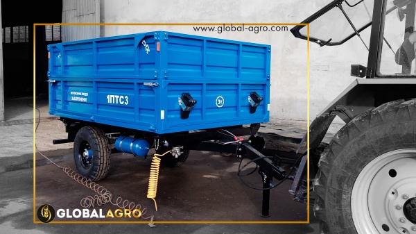 Має просте конструктивне виконання складається з рами, ходової частини та коліс, бортового кузова, механізму (що відповідає за підйом), причіпного пристосування. Дана конструкція істотно спрощує догляд, обслуговування та ремонт тракторного причепа. Потужна ходова частина причепа 1ПТС-3 дозволяє їздити путівцями, бездоріжжям і громадськими дорогами. Використовується за будь-яких кліматичних умов. Кут розвантаження 50 градусів – повне вивантаження вмісту, вантажопідйомність 3 тонни, оснащений пневматичними гальмами. Вага вантажу розподіляється між ходовою частиною та колесами.