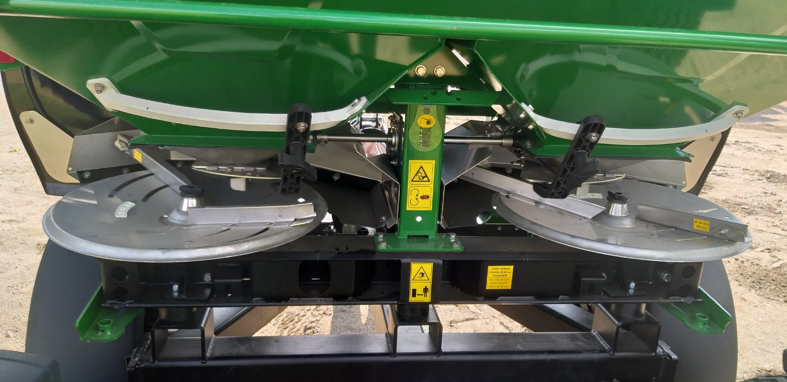 - Бункер спеціальної форми для рівномірного розподілення та повного використання добрив без залишків, а використання відкидного захисного тенту, та захисних щитків, які входять в стандартну комплектацію, забезпечує можливість виконання робіт навіть за складних погодних умов.