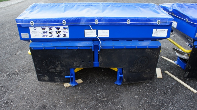 Цей розкидач добрив за рахунок незвичайної форми максимально наближає центр маси пристрою до задньої частини тракторної осі, завдяки чому вдається домогтися рівномірного і однорідного розподілу навантаження між колесами техніки.