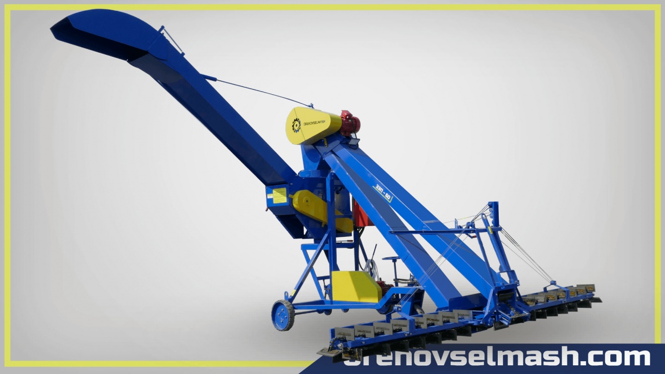 Суцільнозварна металева рама являє собою несучу конструкцію. Шасі з 3 коліс має хорошу опору і стійкість. Два передніх колеса через редуктор і сателлітовий механізм мають привід електродвигуна, що зручно при перестановці. Електродвигуни з редуктором встановлені на трикутної рами і захищені кожухами. Електричний пульт управління змонтований в металевий ящик. Всі рухомі деталі мотора захищені кожухами. Два стрічкових зернопідбирача можуть окремо складатися за допомогою тросового механізму.